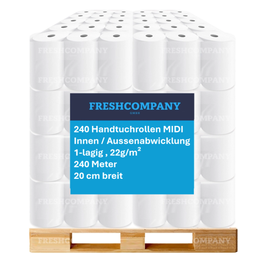 40 x 6 Handtuchrollen MIDI, 20cm breit, 1-lagig aus Recycling, 280 Meter für Innen- und Außenabwicklung