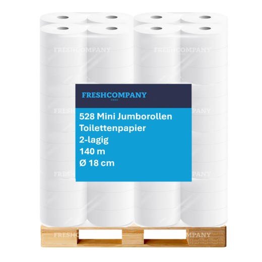 44 x 12 Mini Jumbo-Toilettenpapier, 2-lagig, Zellstoff weiß, 140 m, Ø 18 cm